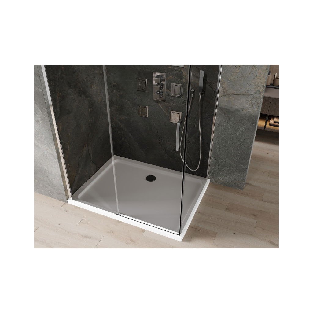 Mexen Omega, cabină de duș cu ușă glisantă 100 (uşă) x 90 (perete) cm, sticlă gri 8mm, profil crom + cadă de duș albă subțire + sifon crom, 825-100-090-01-40-4010