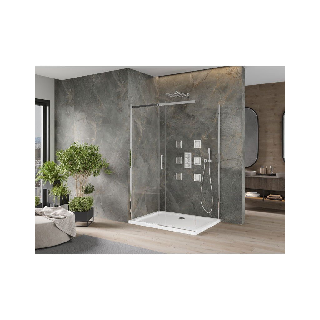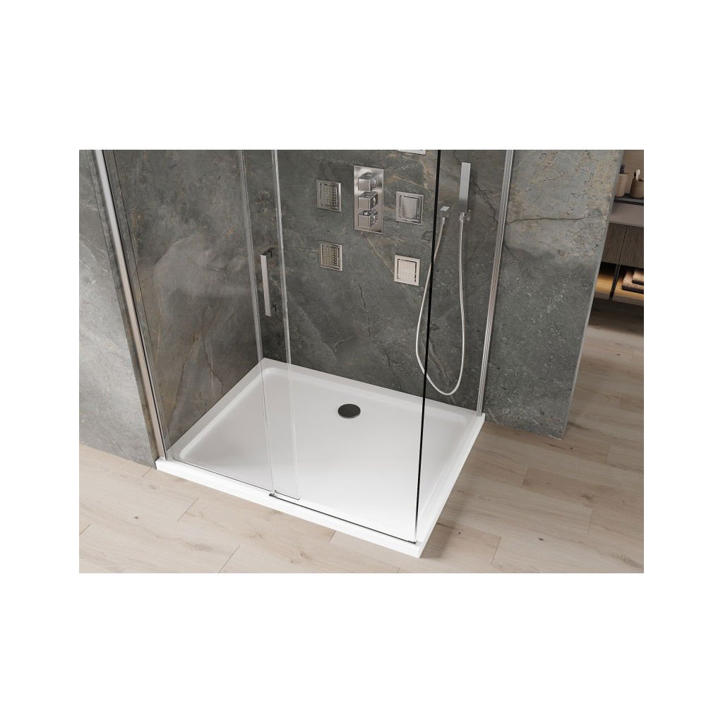 Cabină de duș glisantă Mexen Omega 140 x 100 cm, sticlă 8 mm, profil crom-sticlă transparentă + cadă de duș subțire 5 cm, 825-140-100-01-00-4010