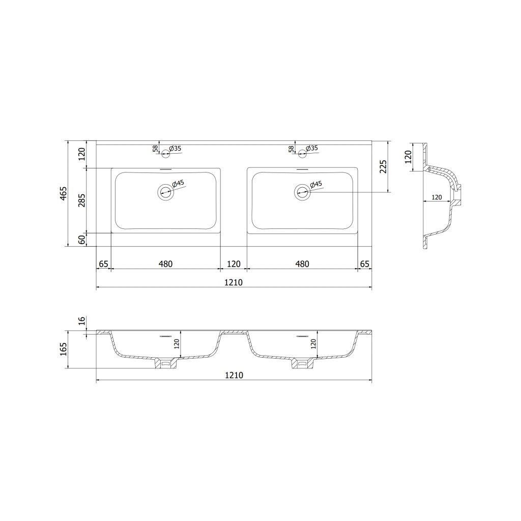 Mexen Otis, chiuvetă dublă încastrată în blat 121 × 46,5 cm, alb mat, 25181201D
