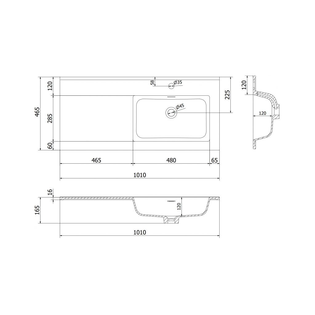 Date tehnice: Dimensiuni: 101x46,5x16,8 cm Adâncime: 11,9 cm Tip: Încastrat, pe partea dreaptă Culoare: Alb lucios Material: Conglomerat Gaură preaplin: Da Gaură baterie: DaParametri suplimentari