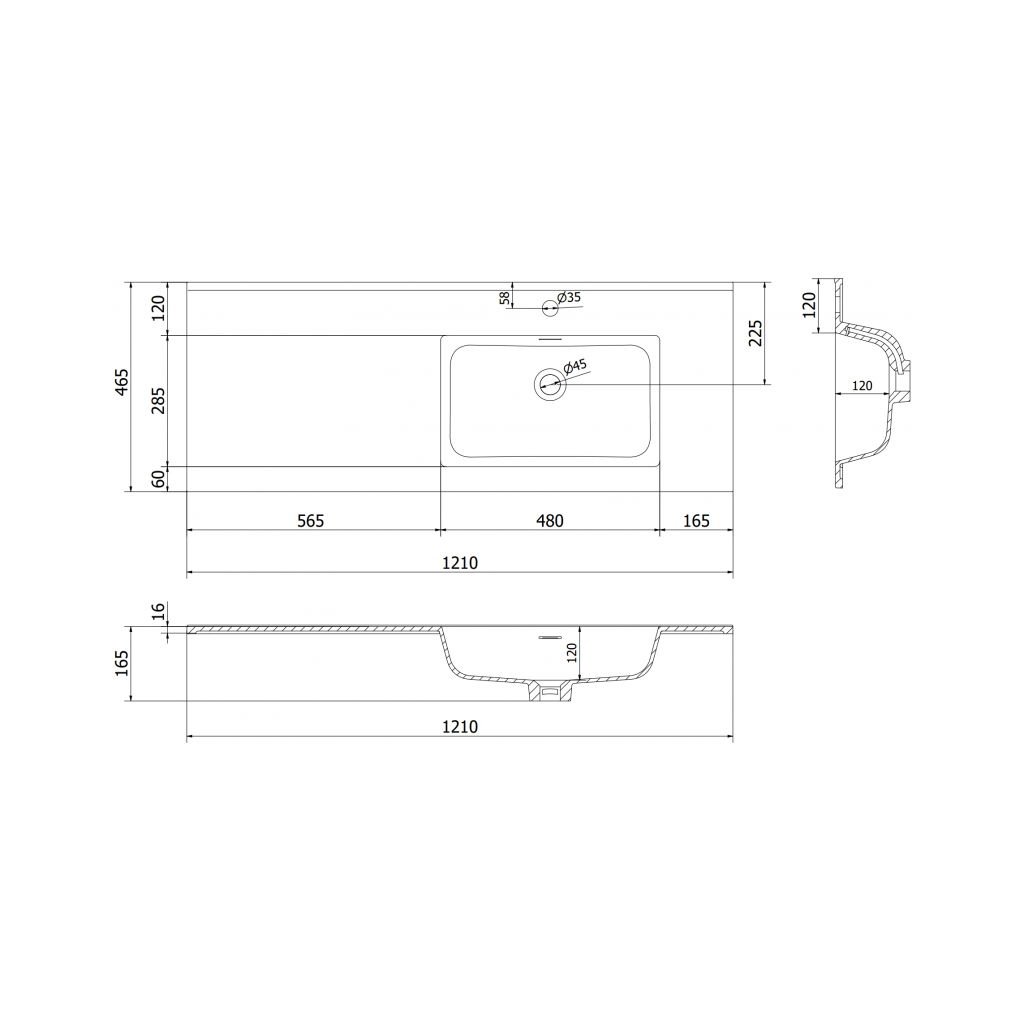 Date tehnice: Dimensiuni: 121x46,5x16,8 cm Adâncime: 11,9 cm Tip: Încastrat în blatul de lucru, partea dreaptă Culoare: Alb lucios Material: Conglomerat Gaură de preaplin: Da Gaură pentru baterie: DaParametri suplimentari