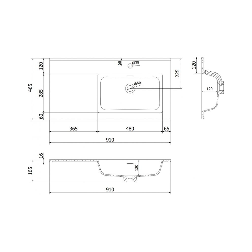 Date tehnice: Dimensiuni: 91x46,5x16,8 cm Adâncime: 11,9 cm Tip: Încastrat în blat, partea dreaptă Culoare: alb mat Material: aglomerat Gaură preaplin: Da Gaură baterie: DaParametri suplimentari