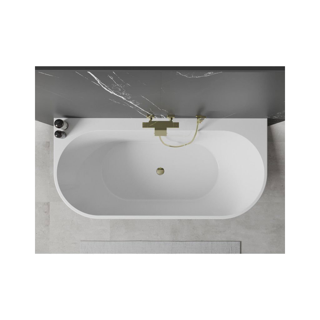 Mexen Oval+, cadă de sine stătătoare pe perete 170 x 80 cm, alb lucios, preaplin auriu lucios, 52681708000-50
