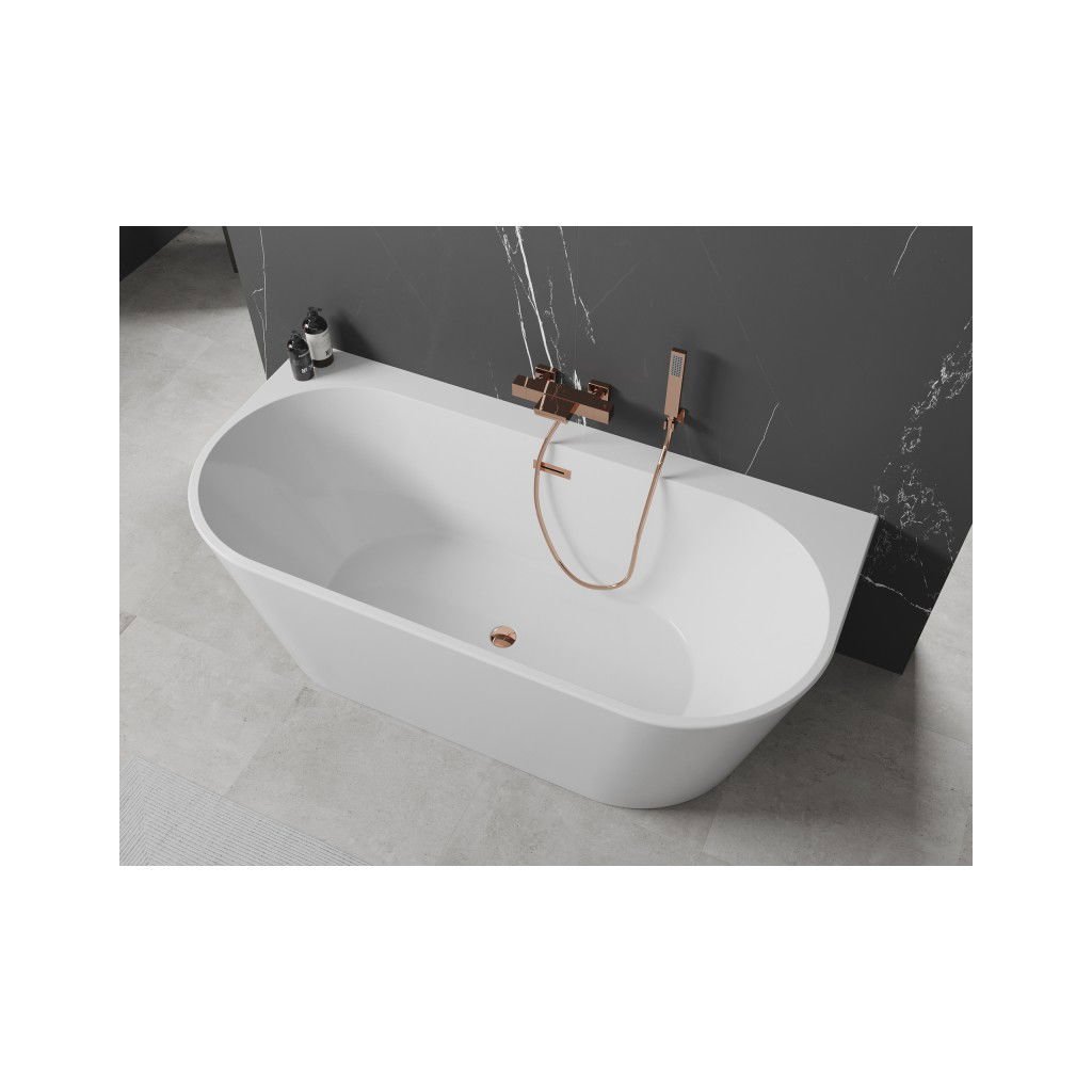 Mexen Oval+, cadă de sine stătătoare pe perete 170 x 80 cm, alb lucios, preaplin auriu roz, 52681708000-60