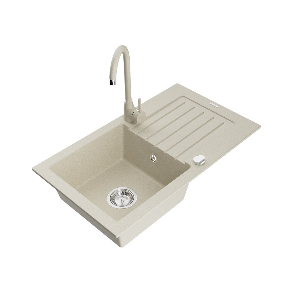 Mexen Pablo, chiuveta granit 1 camera cu scurgere 75x44 cm si baterie de bucatarie Telma, bej, 6510-69-670200-69