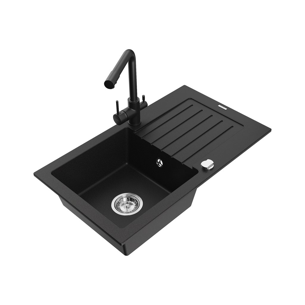 Mexen Pablo, chiuveta granit 752x436x161 mm, robinet cu 1 camera si negru mat Duero, negru, 6510-77-671600-70