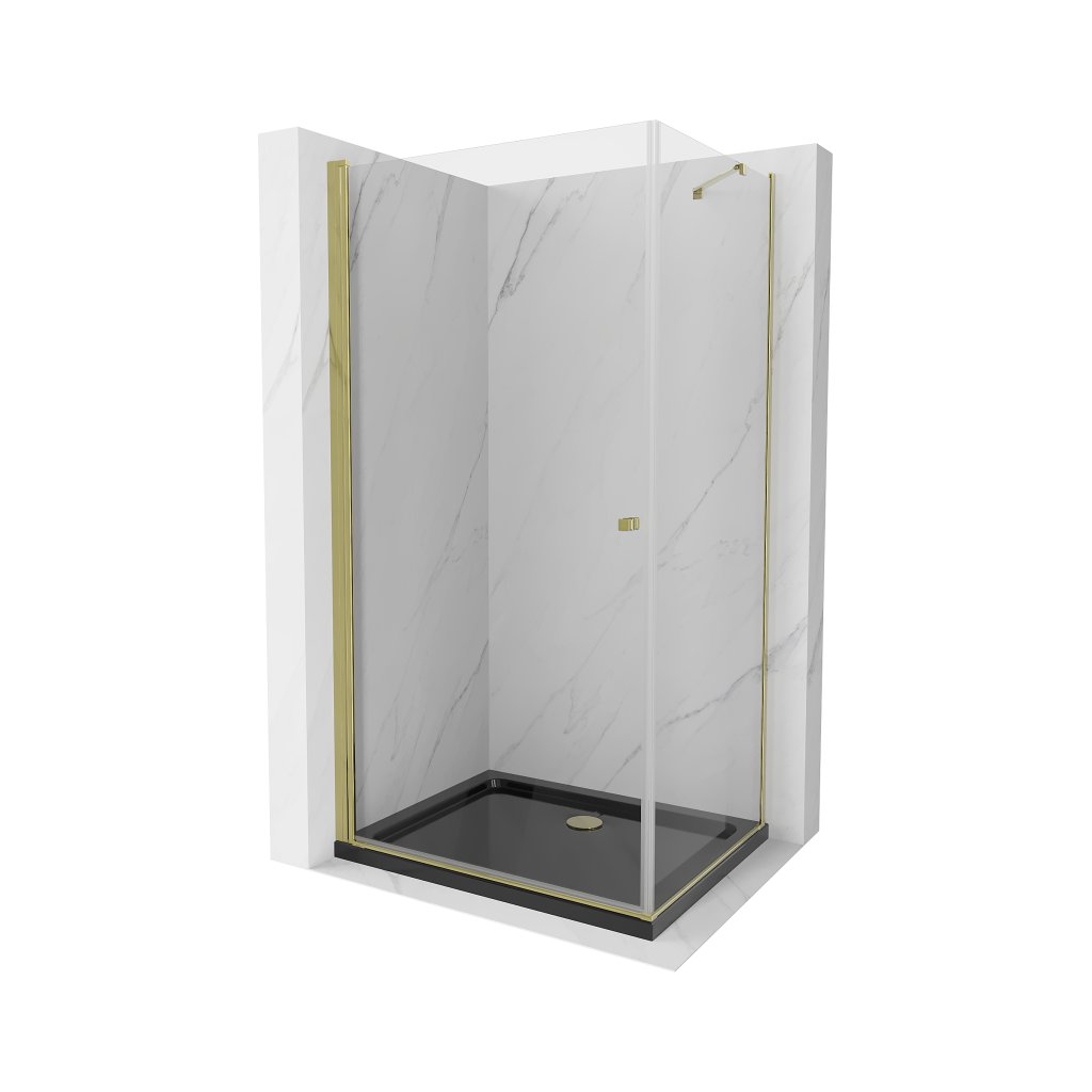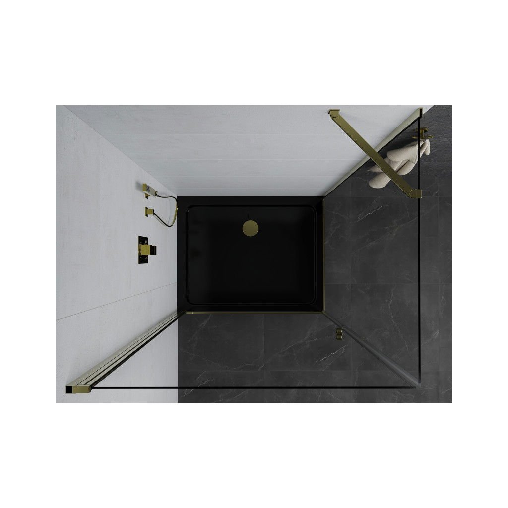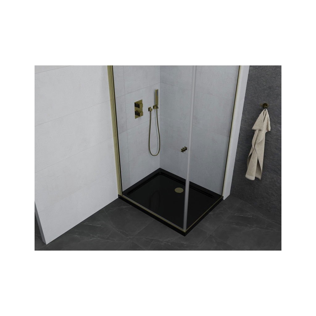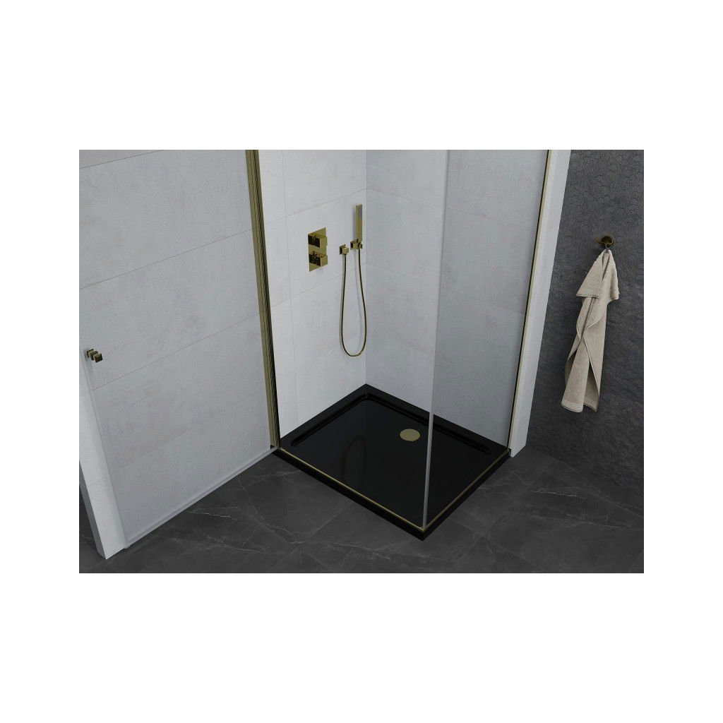 Mexen Pretoria, cabina de dus 100 (usa) x 80 (perete) cm, sticla transparenta 6mm, profil auriu + cadita de dus neagra, 852-100-080-50-00-4070G