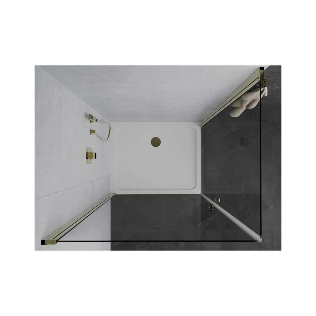 Mexen Pretoria Duo, cabina de dus cu usi cu 2 aripi 90 (usa) x 80 (usa) cm, sticla transparenta 6mm, profil auriu + cadita de dus subtire 5cm alb cu sifon auriu, 852-090-080-50-02-4010G