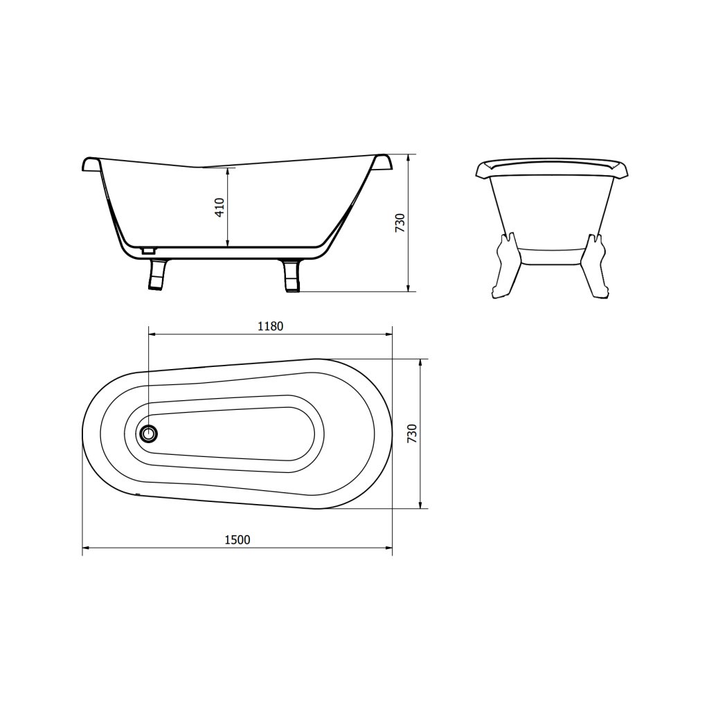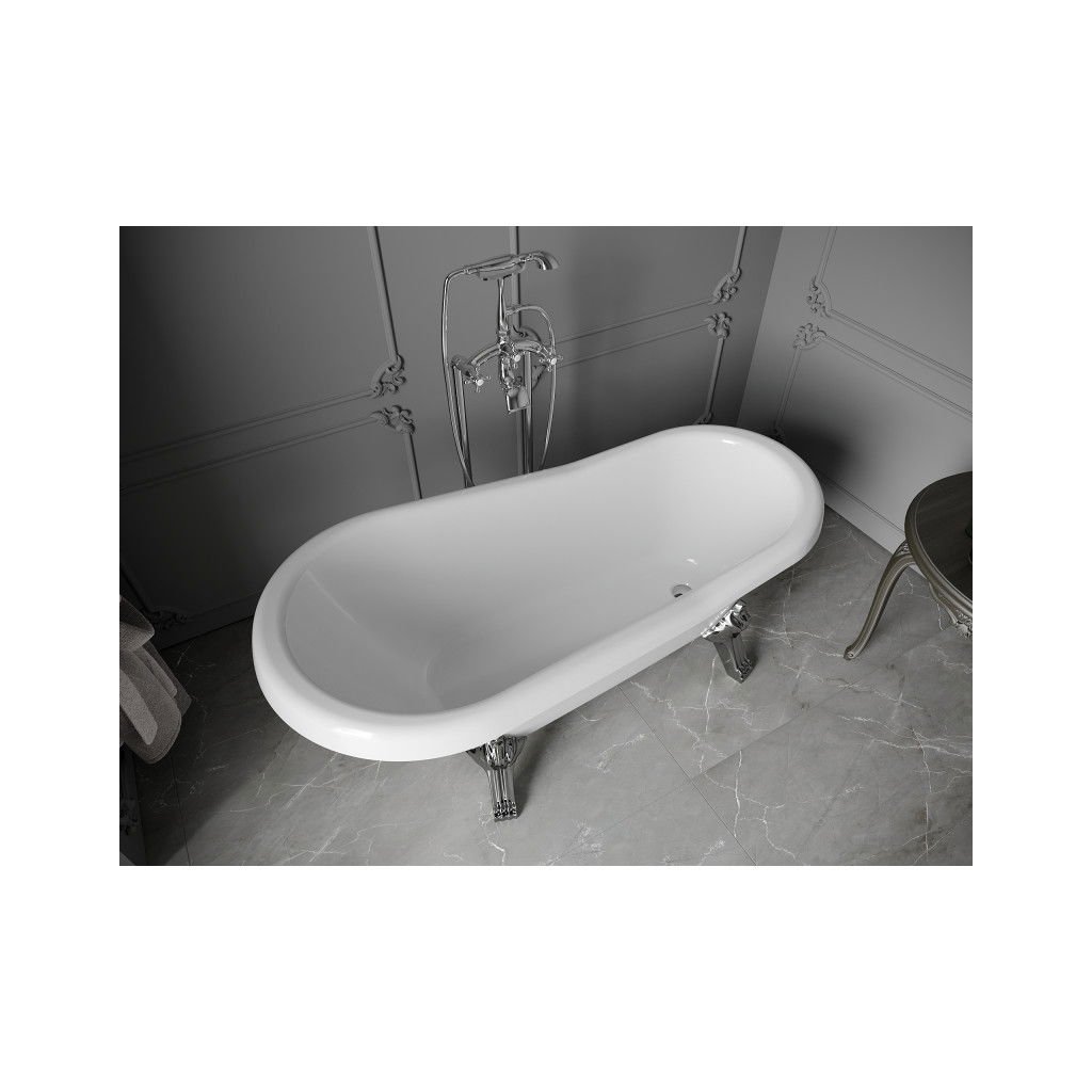 Mexen Retro, cada de sine stătătoare 150 x 73 cm, alb, picioare cromate, 53251507300-00