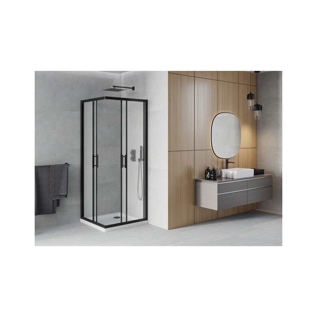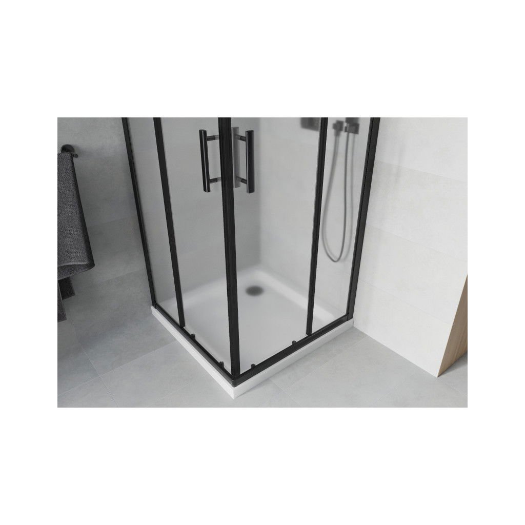 Mexen Rio, duș pătrat cu ușă glisantă 70(uşă) x 70(uşă) x 190 cm, sticlă mată 6mm, profil negru + cadă de duș SLIM albă, 860-070-070-70-30-4010B