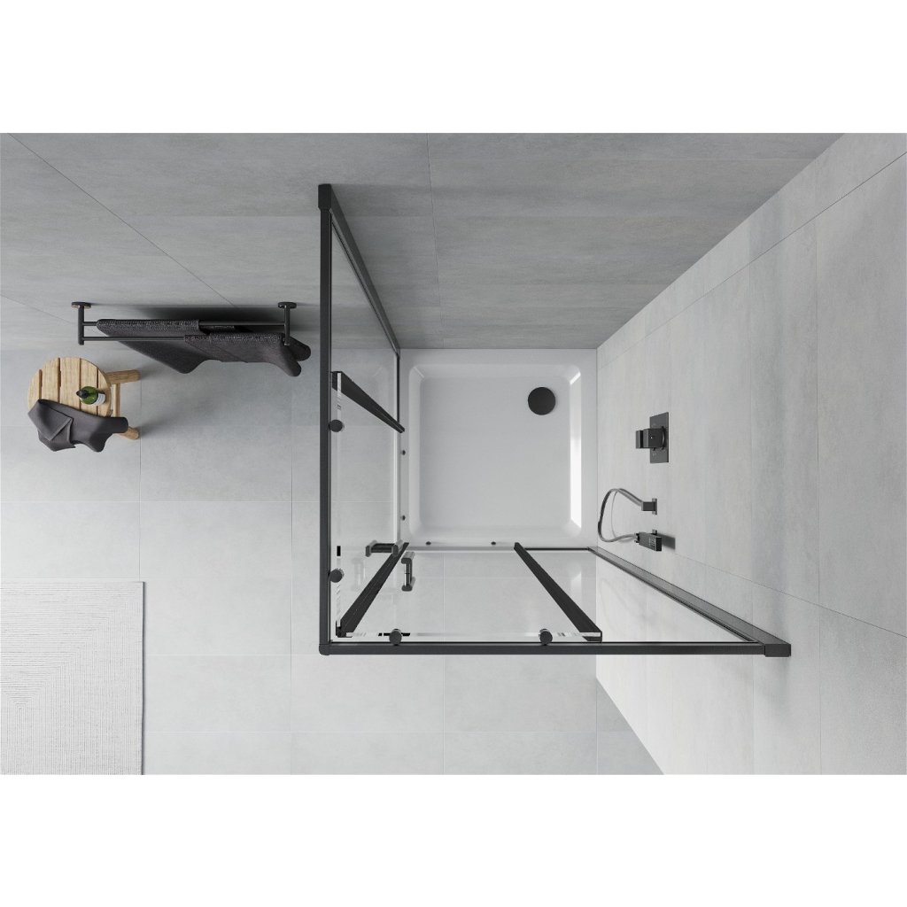 Mexen Rio, duș pătrat cu ușă glisantă 70(uşă) x 70(uşă) x 190 cm, sticlă mată transparentă de 6 mm, profil negru + cadă de duș SLIM albă, 860-070-070-70-00-4010