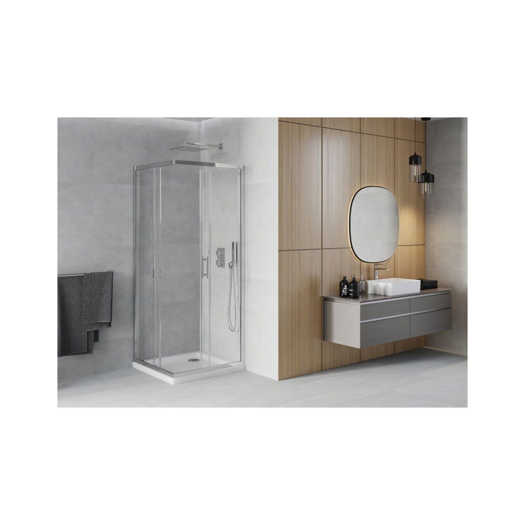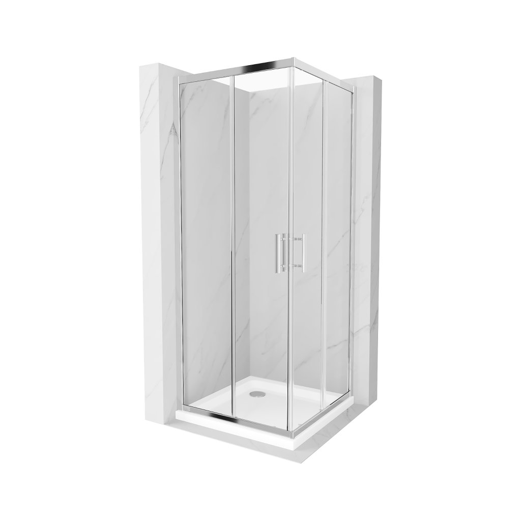 Mexen Rio, duș pătrat cu uşă glisantă 70 (uşă) x 70 (uşă) x 190 cm, sticlă transparentă 6 mm, profil crom + cadă de duş SLIM albă, 860-070-070-01-00-4010