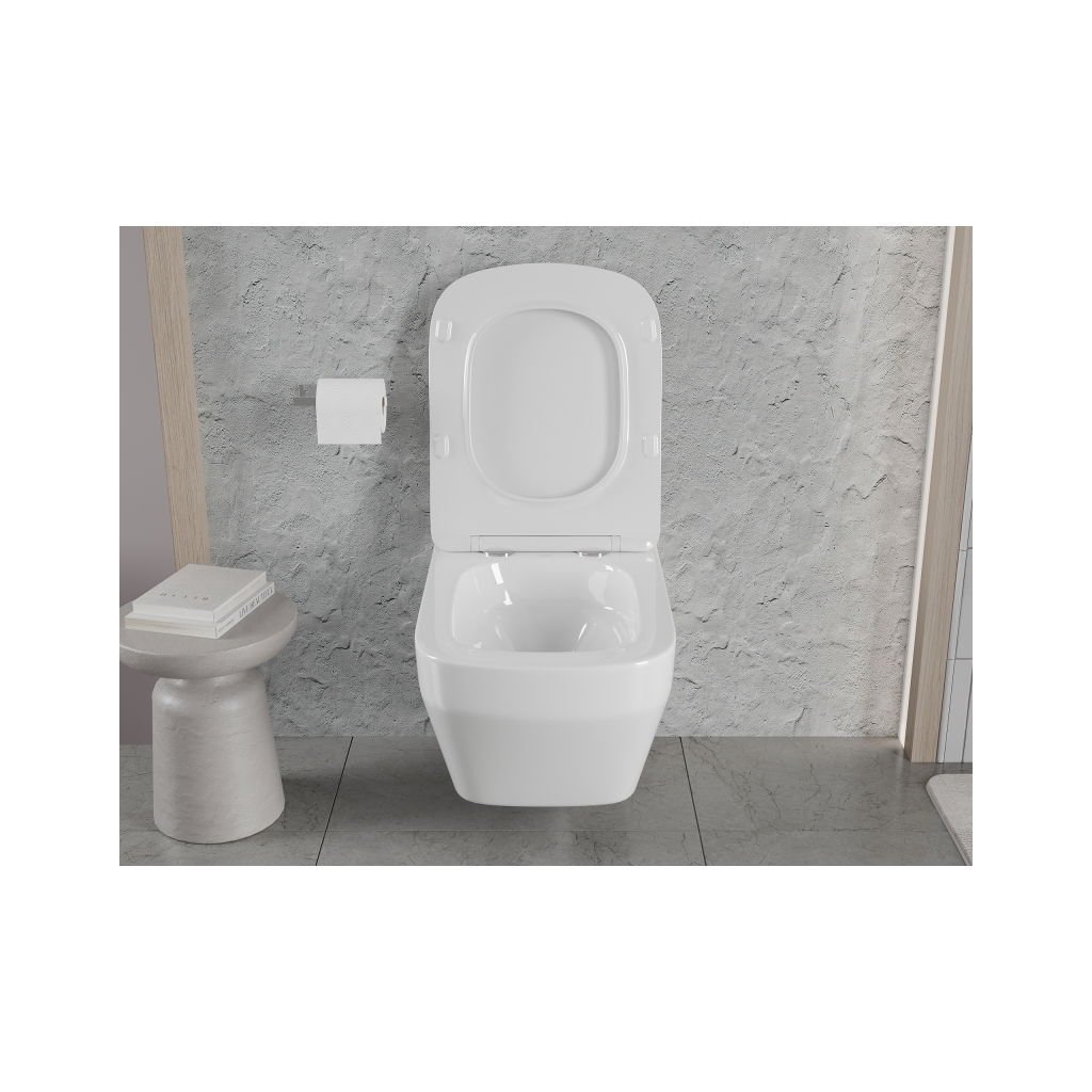 Mexen Riva, vas WC suspendat 555x370x335 mm, Rimless Tornado + scaun WC din duroplast, alb lucios, 30630200T