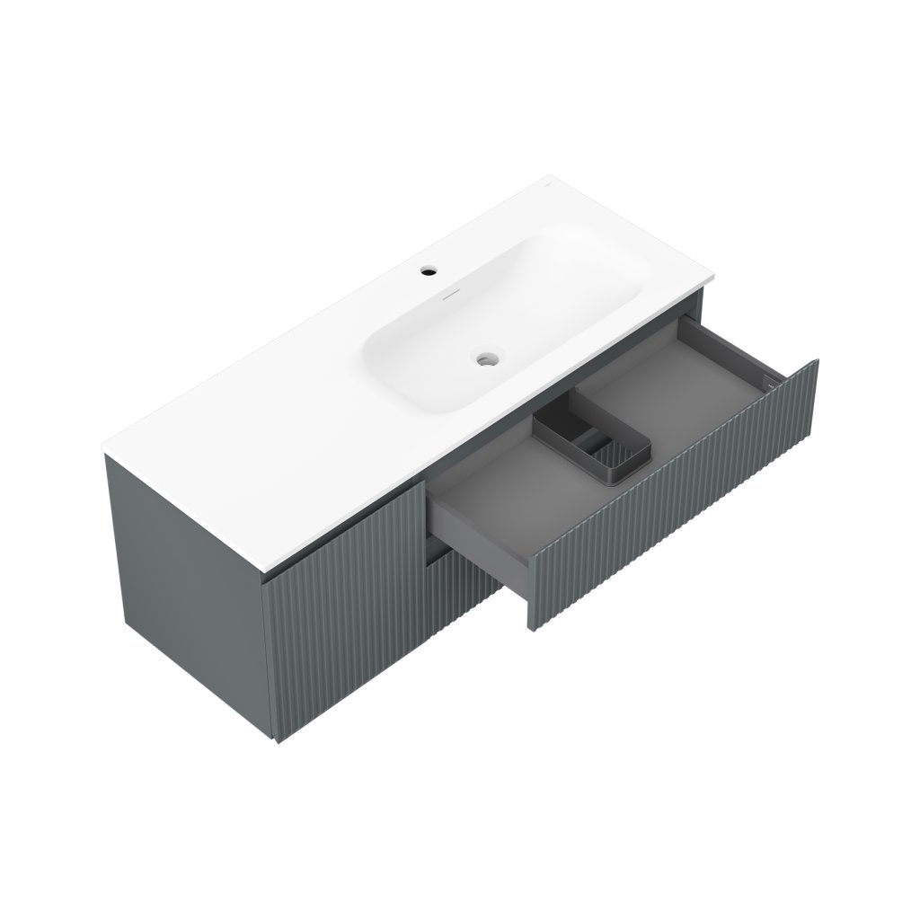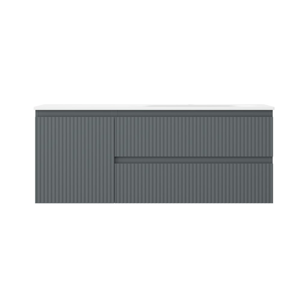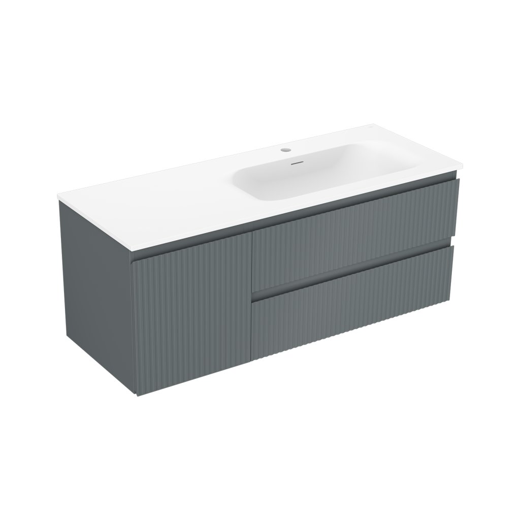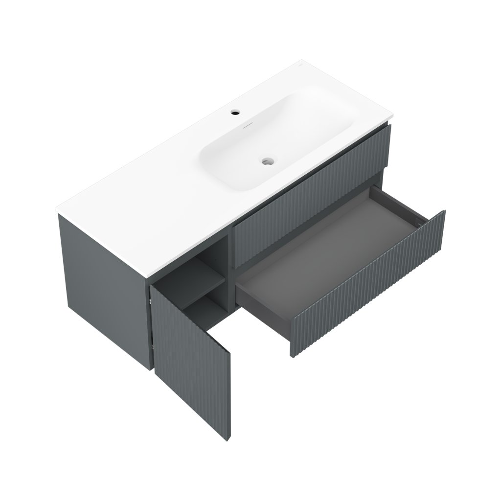 Mexen Rivel, Dulap baie 120 cm cu lavoar dreapta Vela, 2S, 1D, canelat, grafit/alb mat, 91A23-12047-3-BBFFF66-W23P01