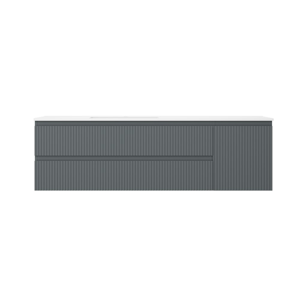 Mexen Rivel, Dulap baie 160 cm cu lavoar stânga Otis, 2S, 1D, canelat, grafit/alb mat, 91A23-16047-3-BBFFF66-W18L01
