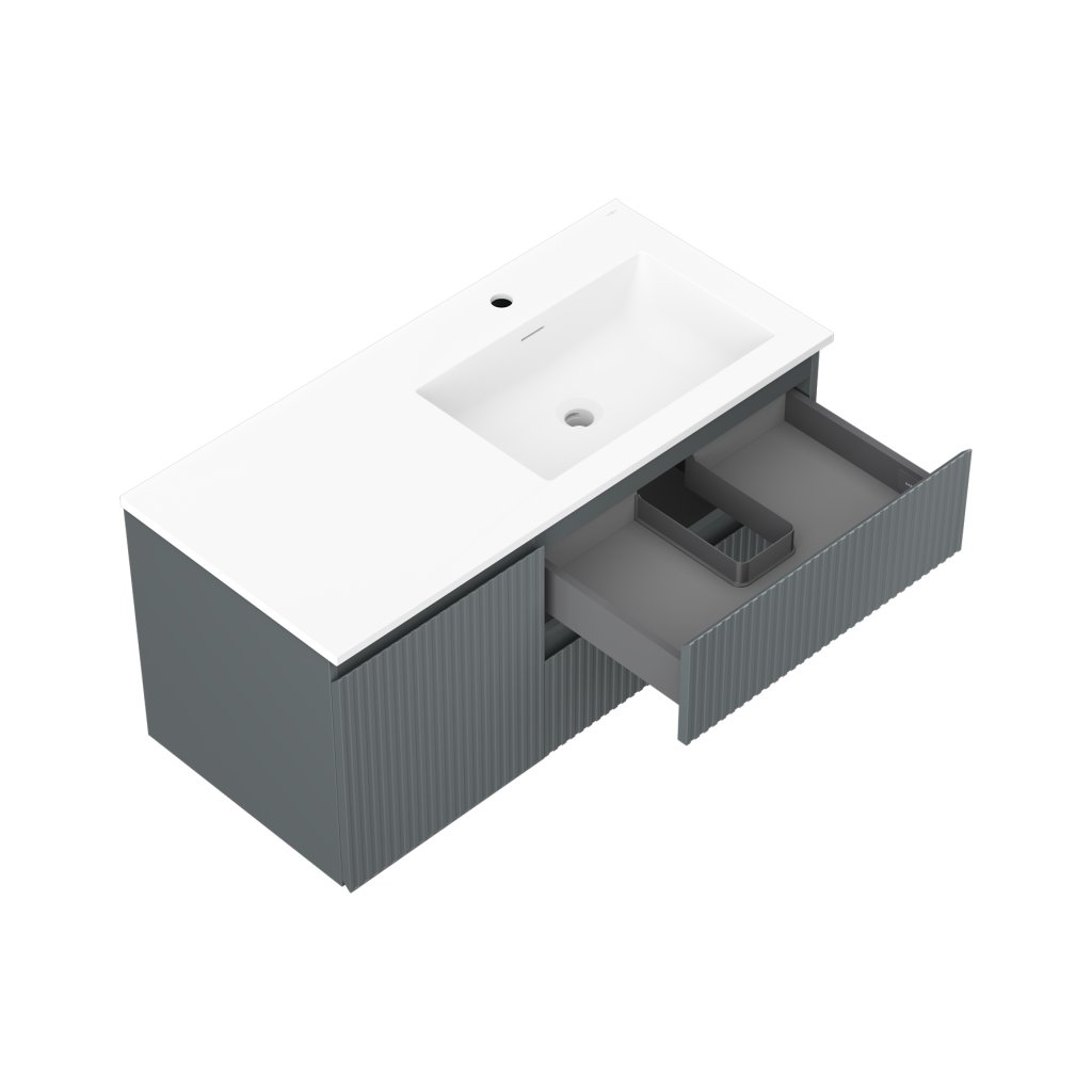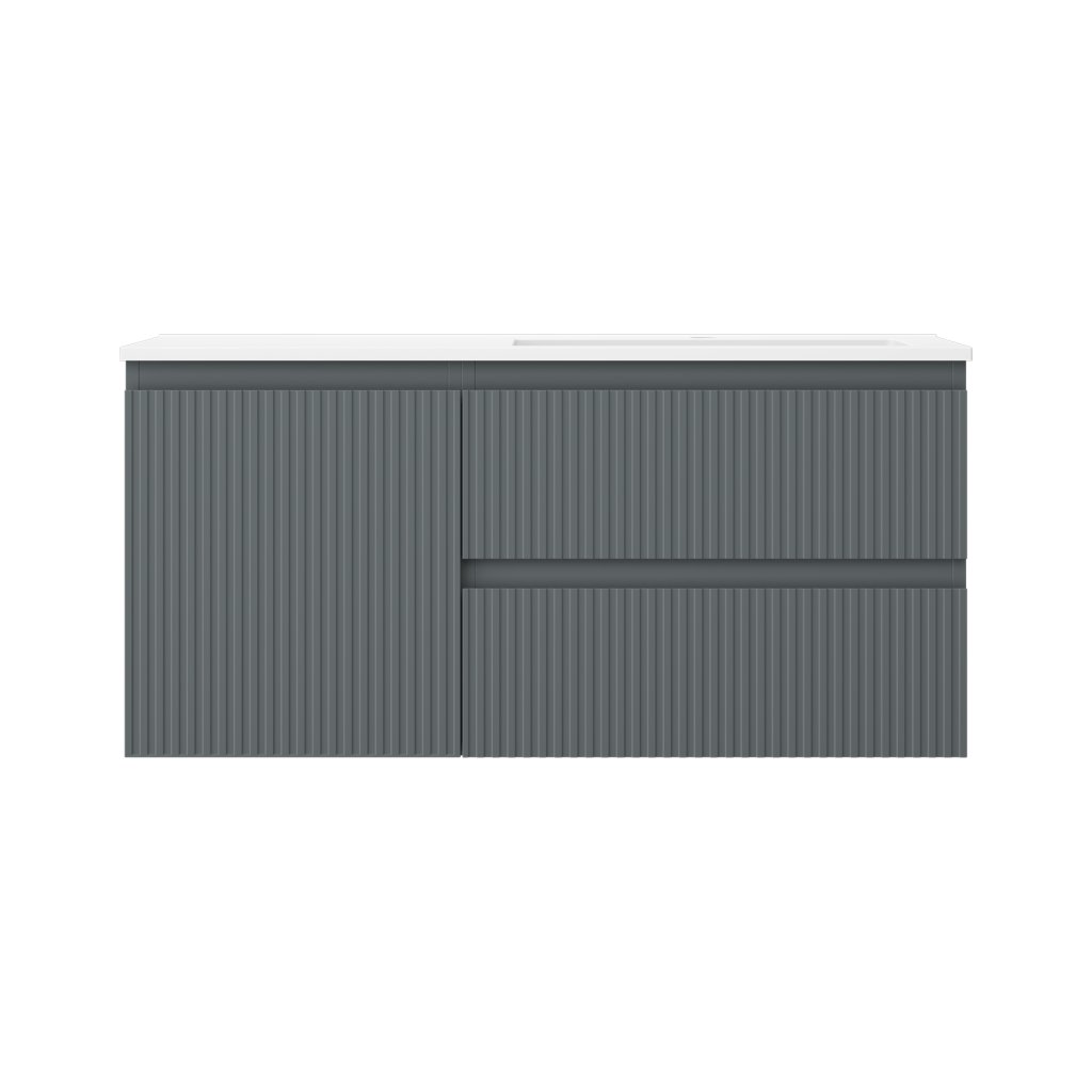 Mexen Rivel, mobilier baie 100 cm cu lavoar Otis dreapta, 2S, 1D, canelat, grafit/alb mat, 91A23-10047-3-BBFFF66-W18P01