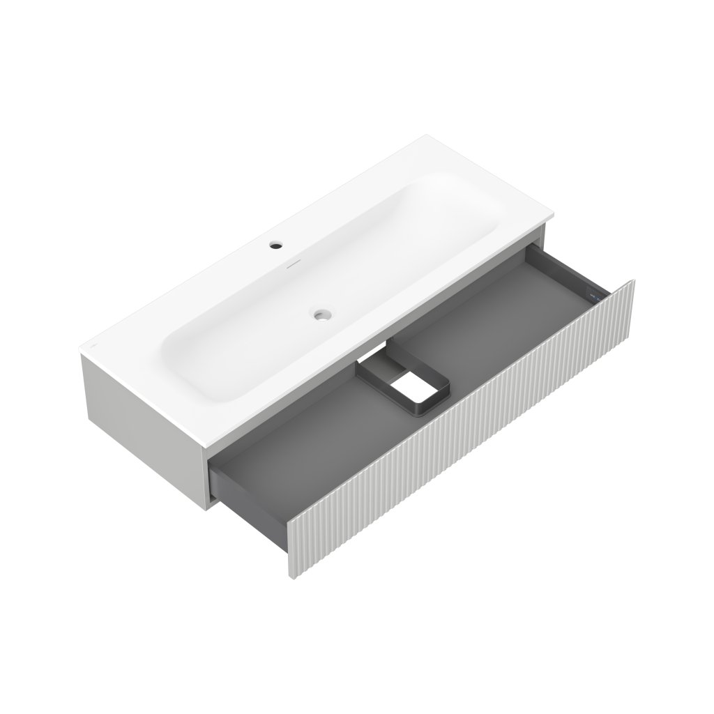 Mexen Rivel, mobilier baie 120 cm cu lavoar Vela, 1 sertar, canelat, gri mat/alb, 91A20-12023-1-BF62-W23M01