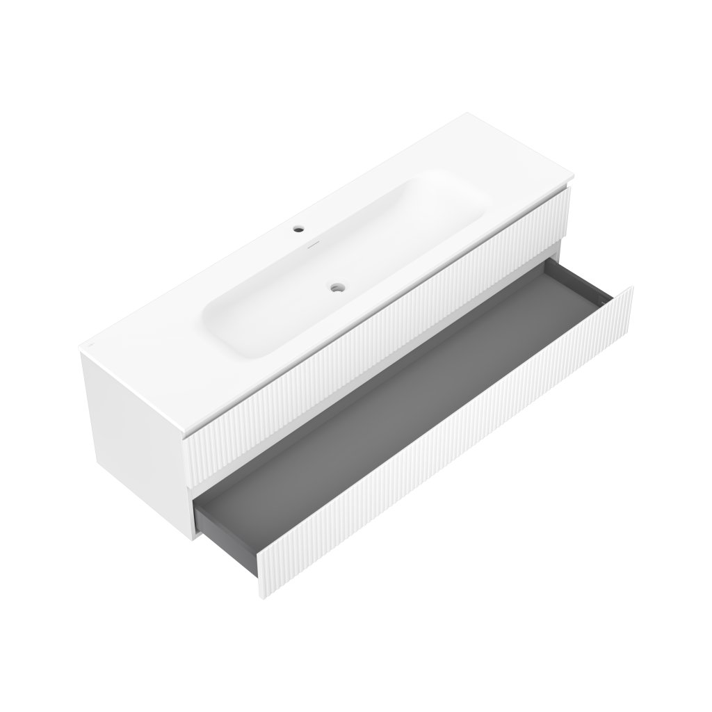 Mexen Rivel, mobilier baie 160 cm cu lavoar Vela, 2 sertare, canelat, alb mat, 91A20-16047-2-BFF01-W23M01