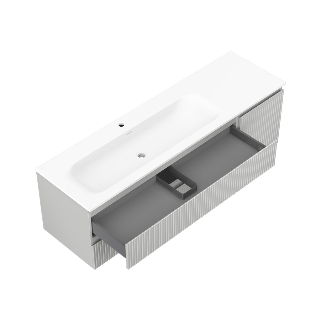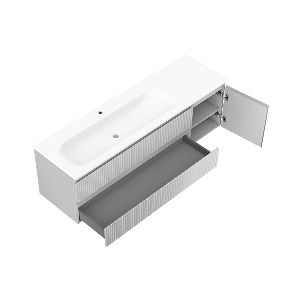 Mexen Rivel, mobilier baie 160 cm cu lavoar Vela stânga, 2S, 1D, canelat, gri mat/alb mat - 91A23-16047-3-BBFFF62-W23L01