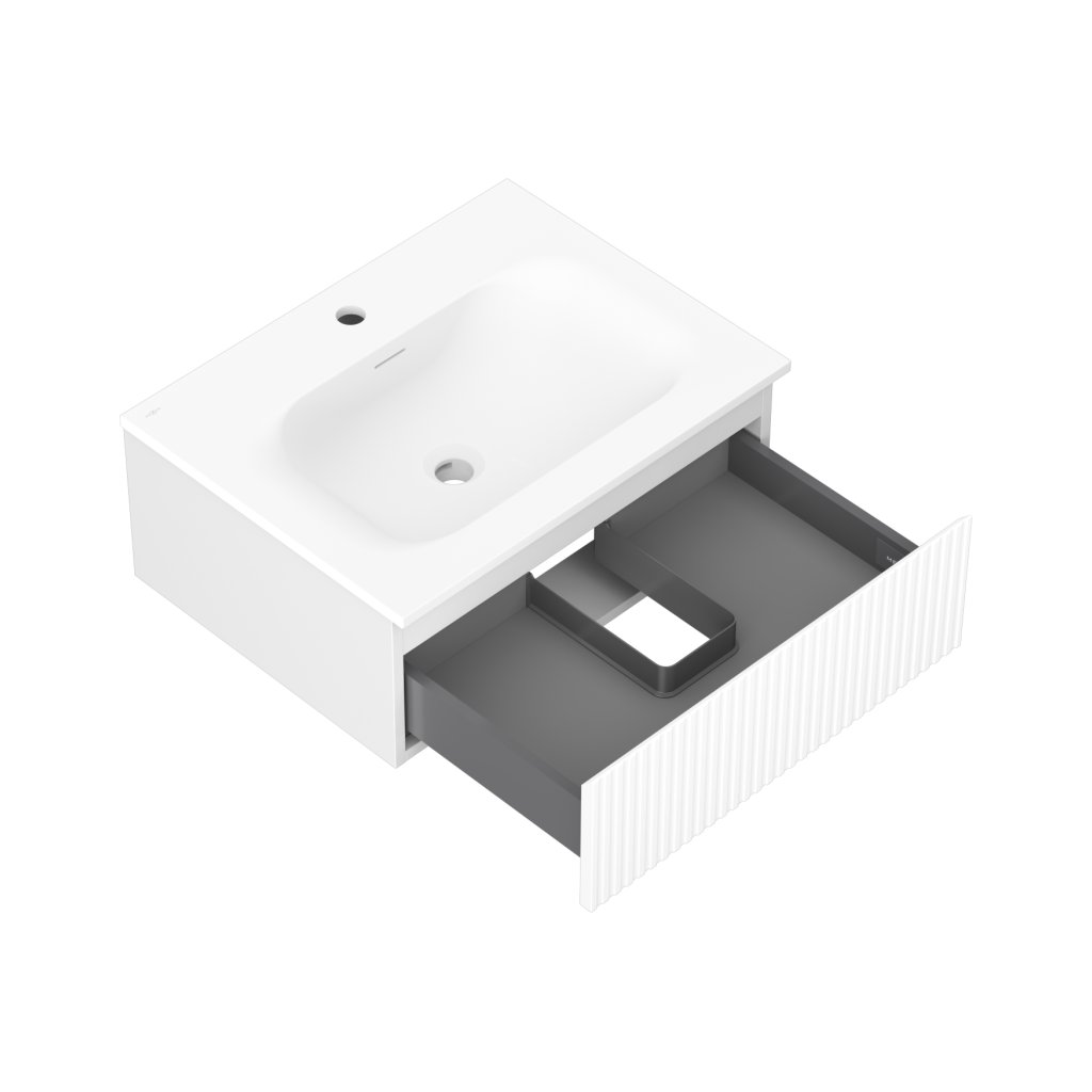 Mexen Rivel, mobilier baie 60 cm cu lavoar Vela, 1 sertar, canelat, alb mat, 91A20-06023-1-BF01-W23M01