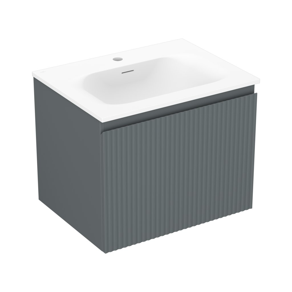 Mexen Rivel, mobilier baie 60 cm cu lavoar Vela, 1 sertar, canelat, grafit mat/alb mat, 91A20-06047-1-BF66-W23M01