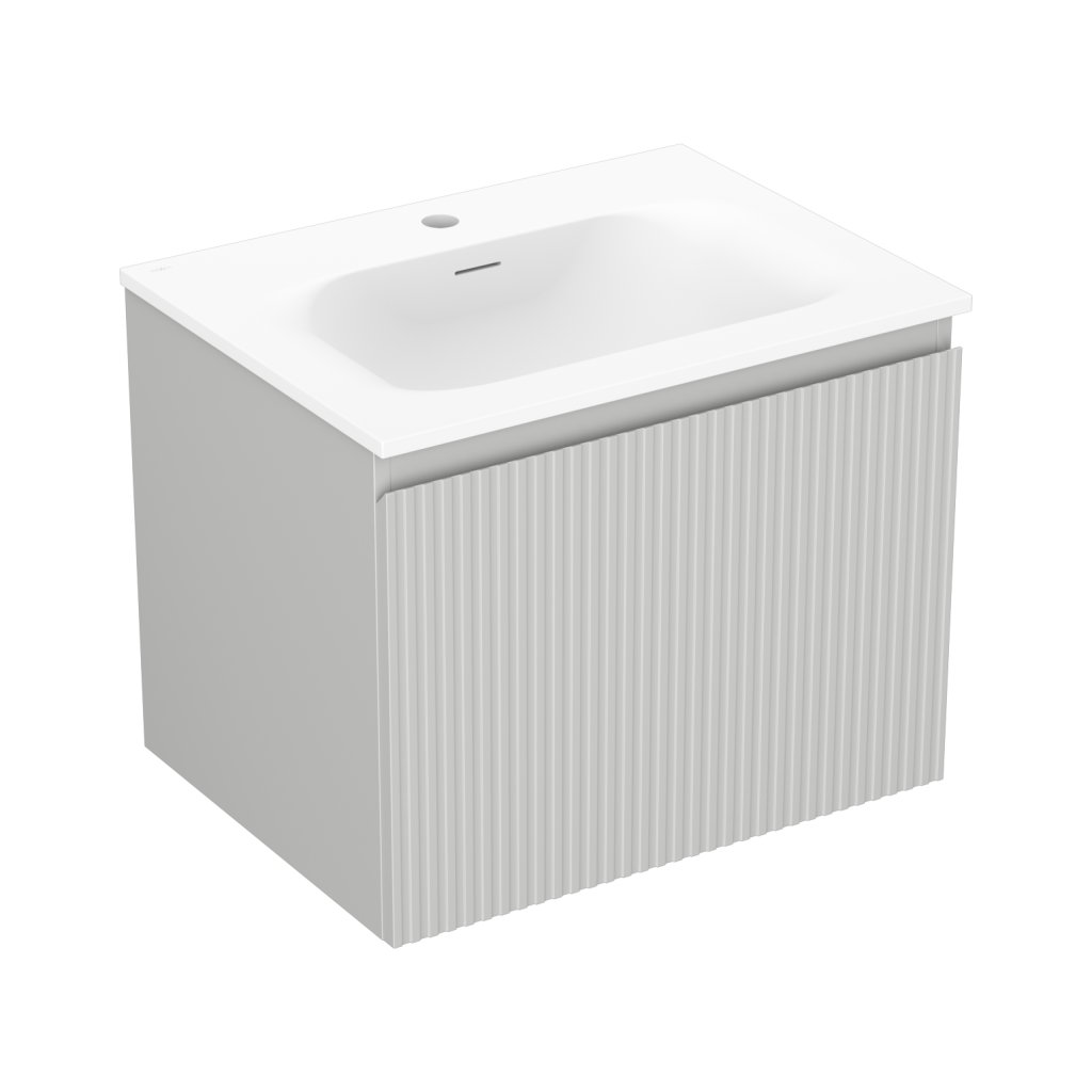 Mexen Rivel, mobilier baie 60 cm cu lavoar Vela, 1 sertar, canelat, gri mat/alb, 91A20-06047-1-BF62-W23M01