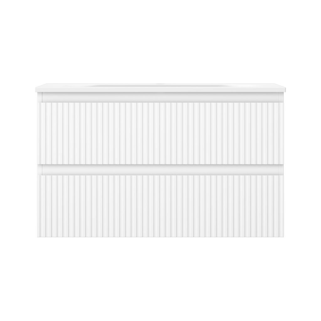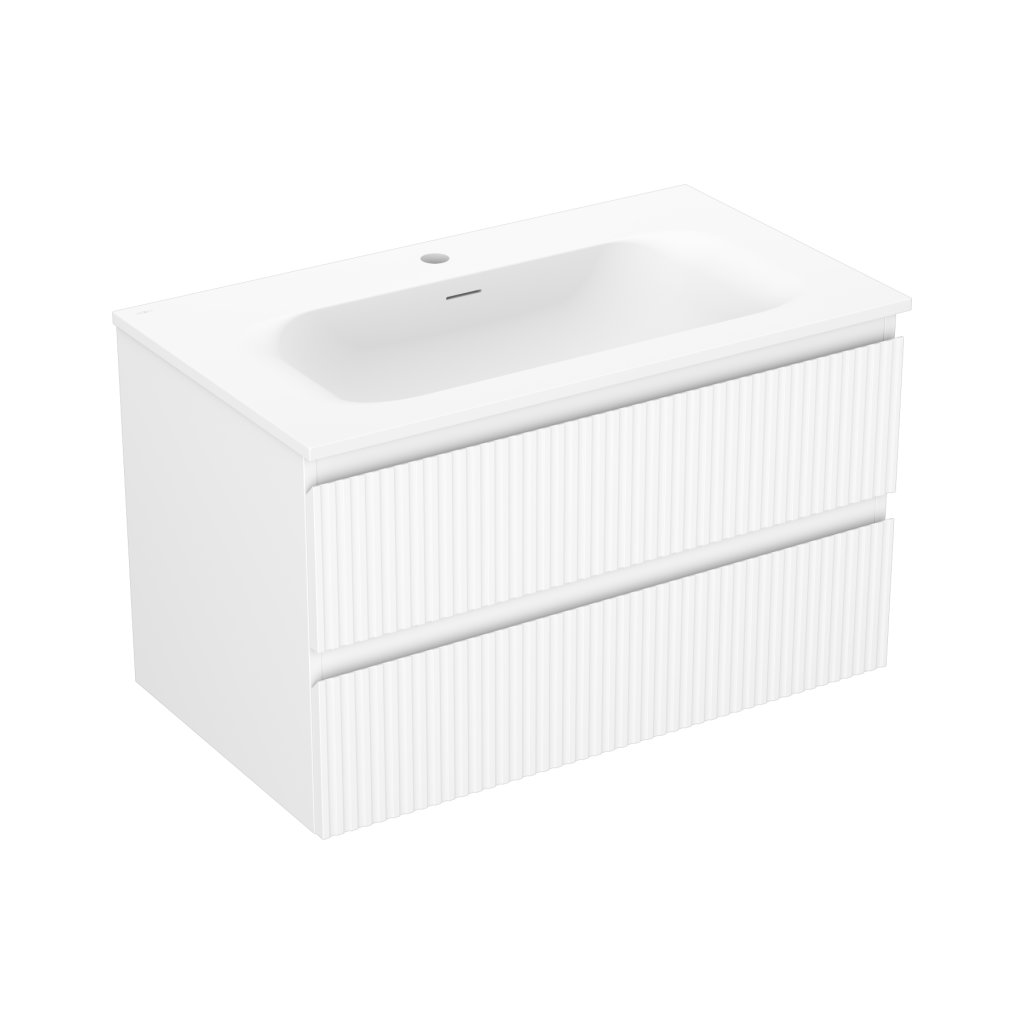 Mexen Rivel, mobilier baie 80 cm cu lavoar Vela, 2 sertare, canelat, alb mat, 91A20-08047-2-BFF01-W23M01