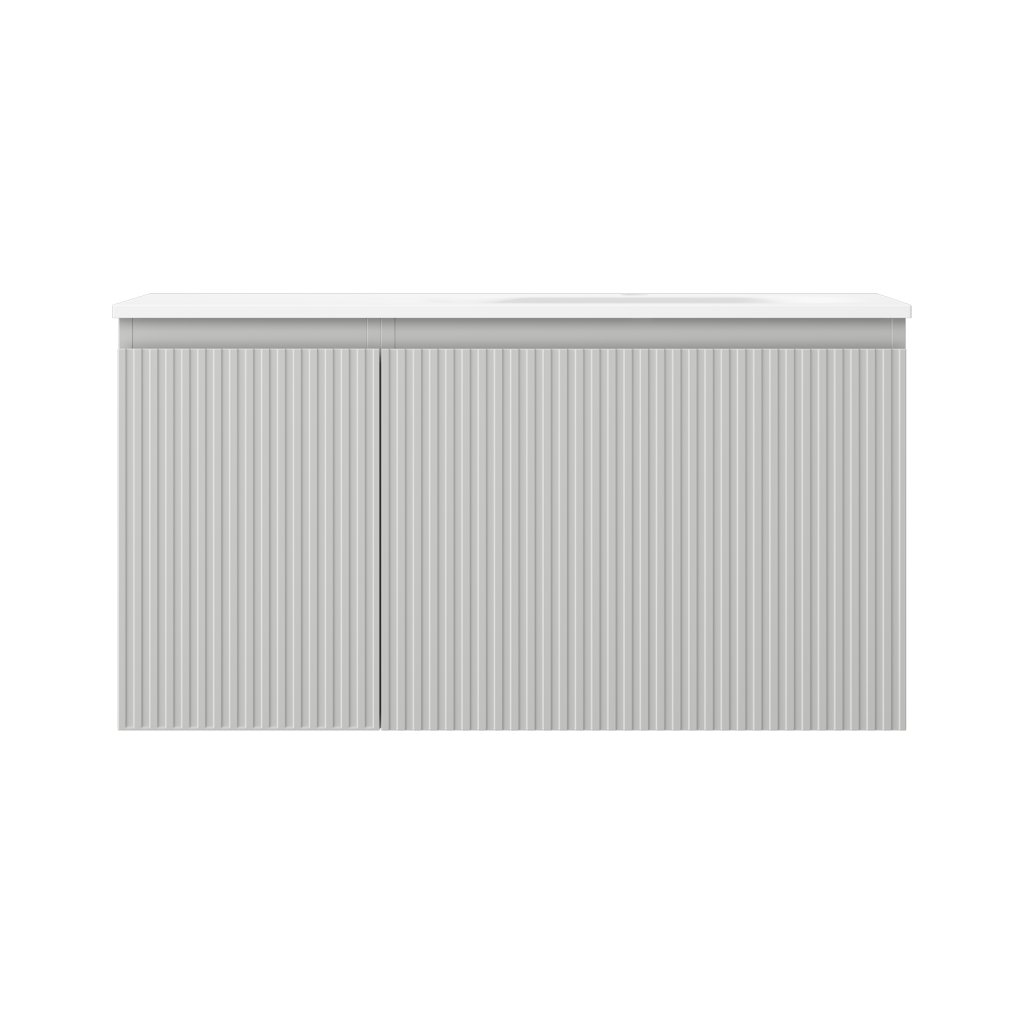Mexen Rivel, mobilier baie 90 cm cu lavoar dreapta Vela, 1S, 1D, canelat, gri mat/alb mat - 91A23-09047-3-BBFF62-W23P01
