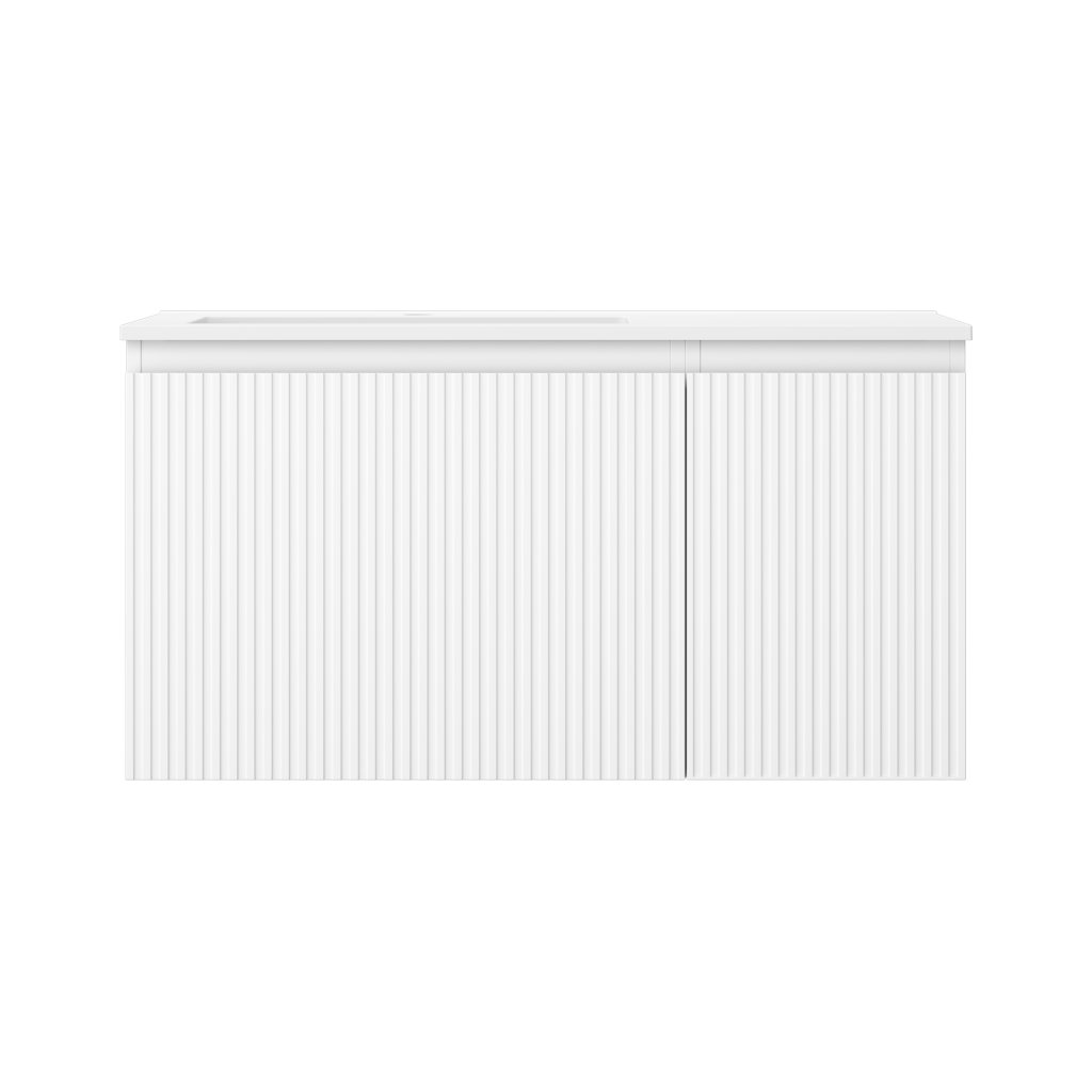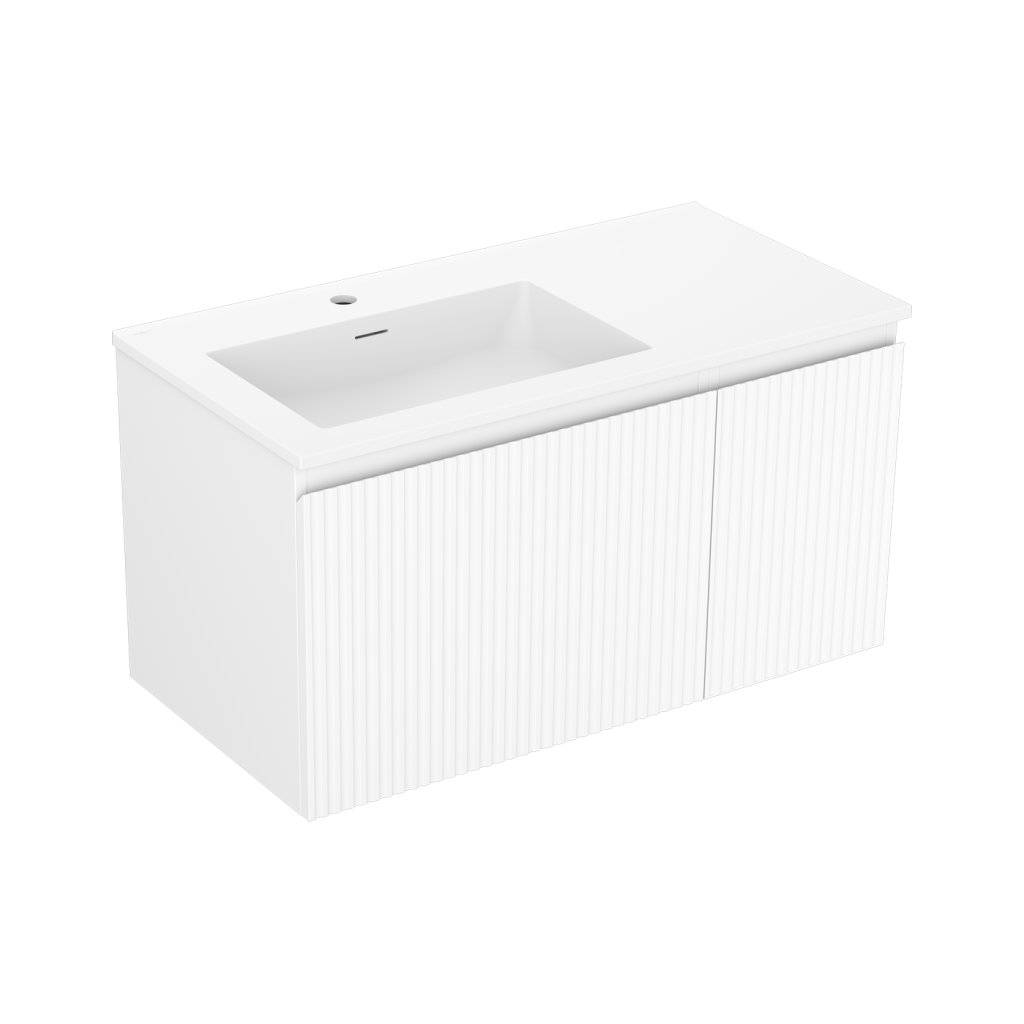 Mexen Rivel, mobilier baie 90 cm cu lavoar Otis stânga, 1S, 1D, canelat, alb mat, 91A23-09047-3-BBFF01-W18L01