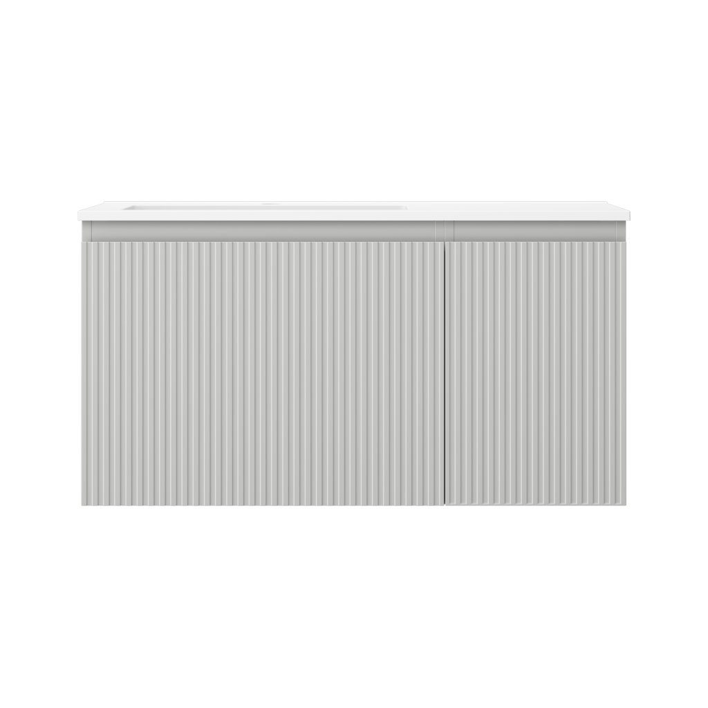 Mexen Rivel, mobilier baie 90 cm cu lavoar Otis stânga, 1S, 1D, canelat, gri mat/alb mat - 91A23-09047-3-BBFF62-W18L01