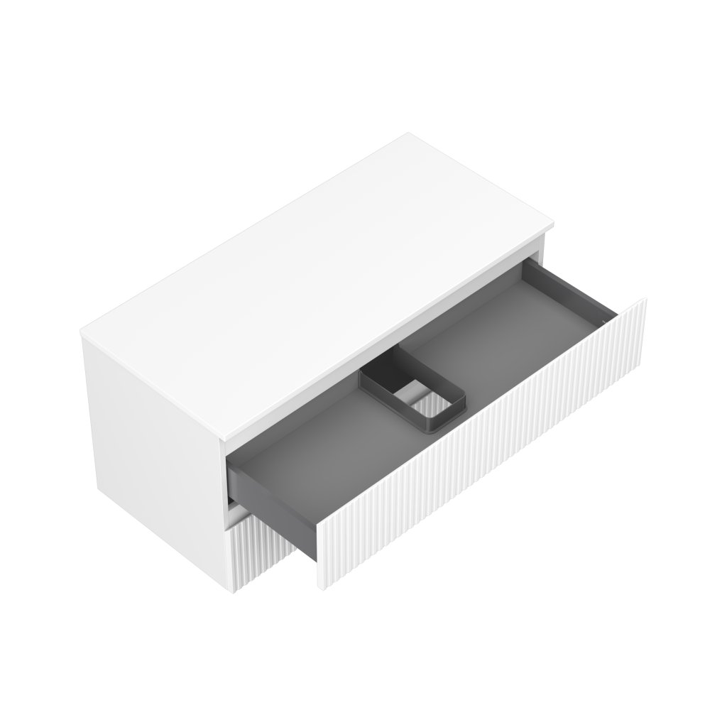 Mexen Rivel, mobilier de baie 100 cm cu blat, 2 sertare, canelat, alb mat, 91A20-10047-2-BFFC01