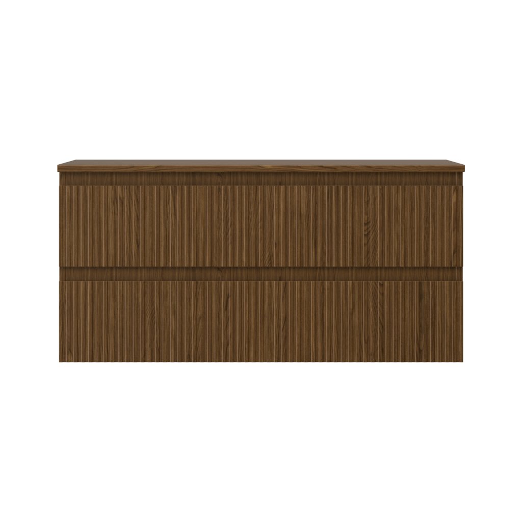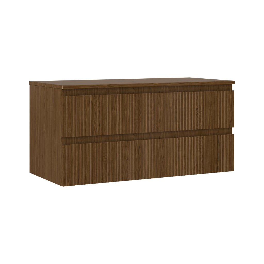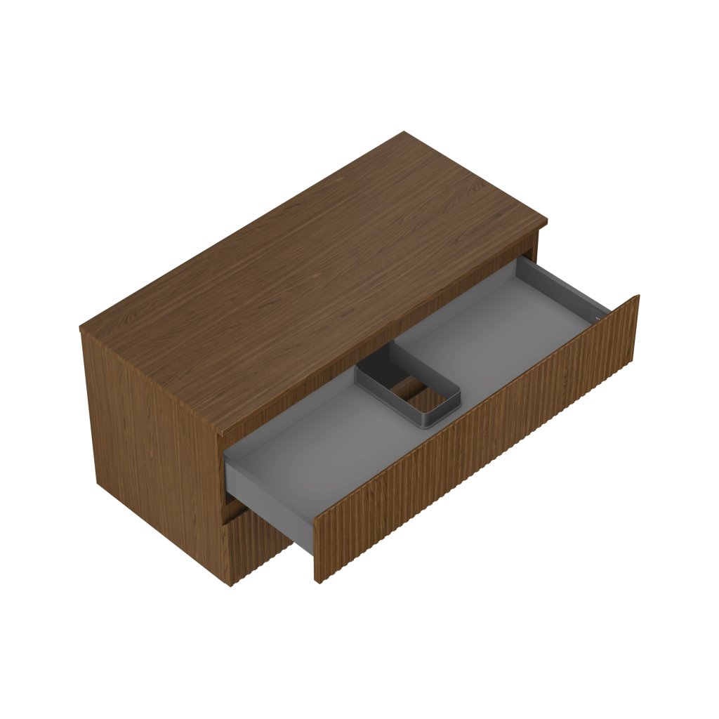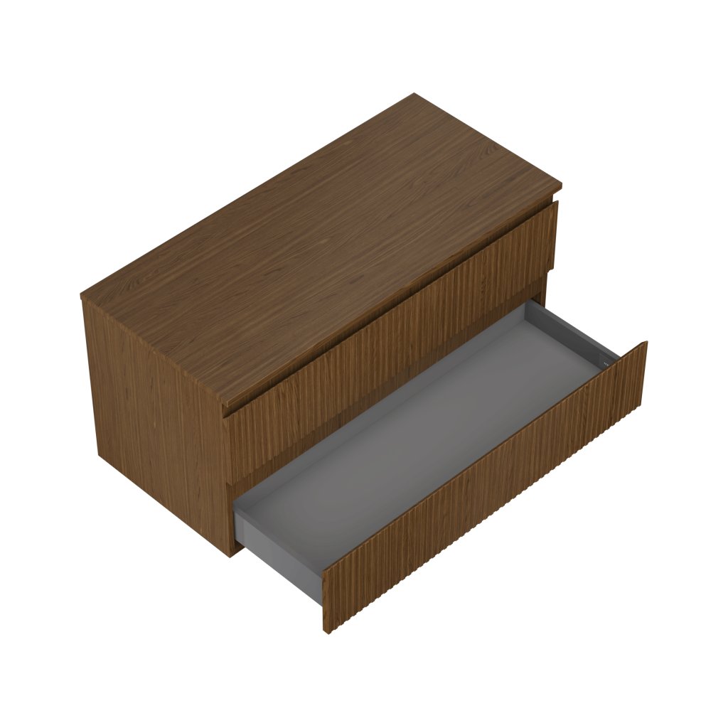 Mexen Rivel, mobilier de baie 100 cm cu blat, 2 sertare, canelat, nuc, 91A20-10047-2-BFFC86