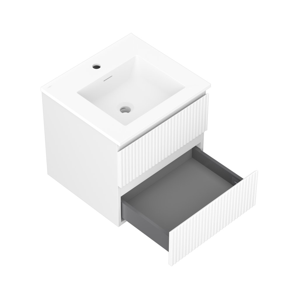Mexen Rivel, mobilier de baie 50 cm cu lavoar Otis, 2 sertare, canelat, alb mat, 91A20-05047-2-BFF01-W18M01