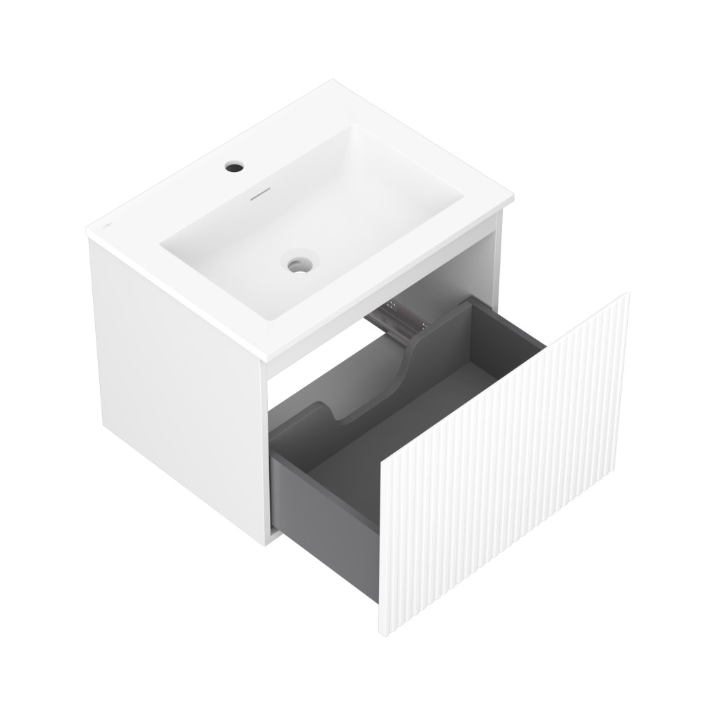 Mexen Rivel, mobilier de baie 60 cm cu lavoar Otis, 1 sertar, canelat, alb mat, 91A20-06047-1-BF01-W18M01