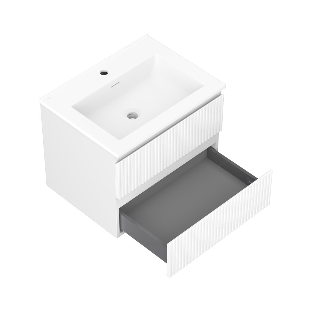 Mexen Rivel, mobilier de baie 60 cm cu lavoar Otis, 2 sertare, canelat, alb mat, 91A20-06047-2-BFF01-W18M01