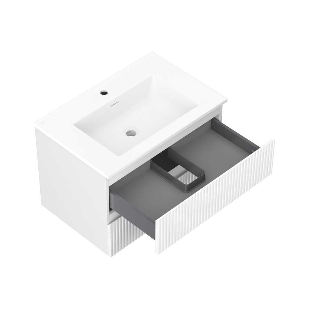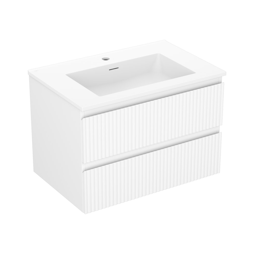Mexen Rivel, mobilier de baie 70 cm cu lavoar Otis, 2 sertare, canelat, alb mat, 91A20-07047-2-BFF01-W18M01