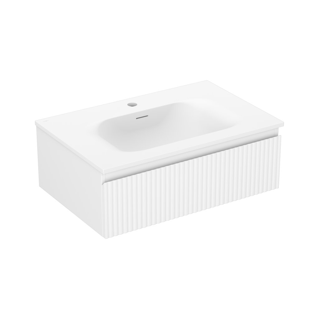Mexen Rivel, mobilier de baie 70 cm cu lavoar Vela, 1 sertar, canelat, alb mat, 91A20-07023-1-BF01-W23M01