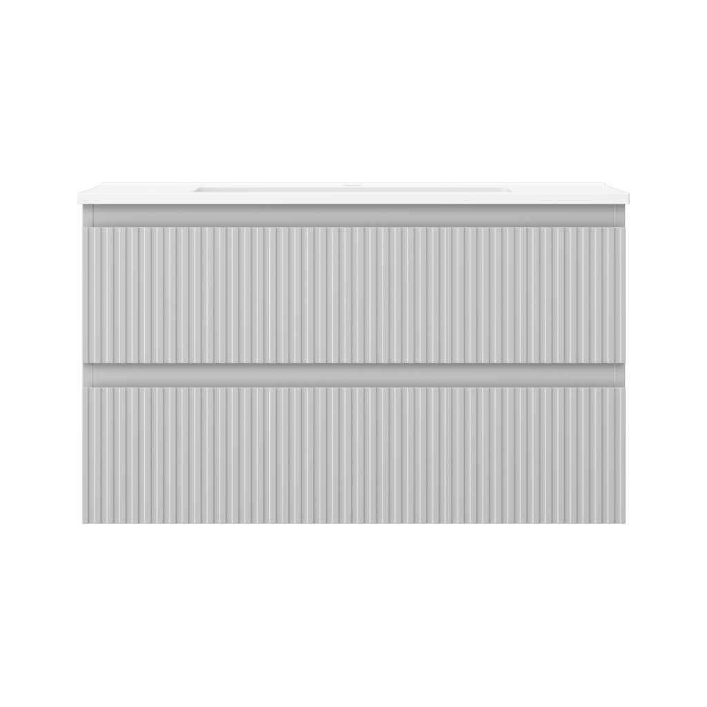 Mexen Rivel, mobilier de baie 80 cm cu lavoar Otis, 2 sertare, canelat, gri mat/alb, 91A20-08047-2-BFF62-W18M01
