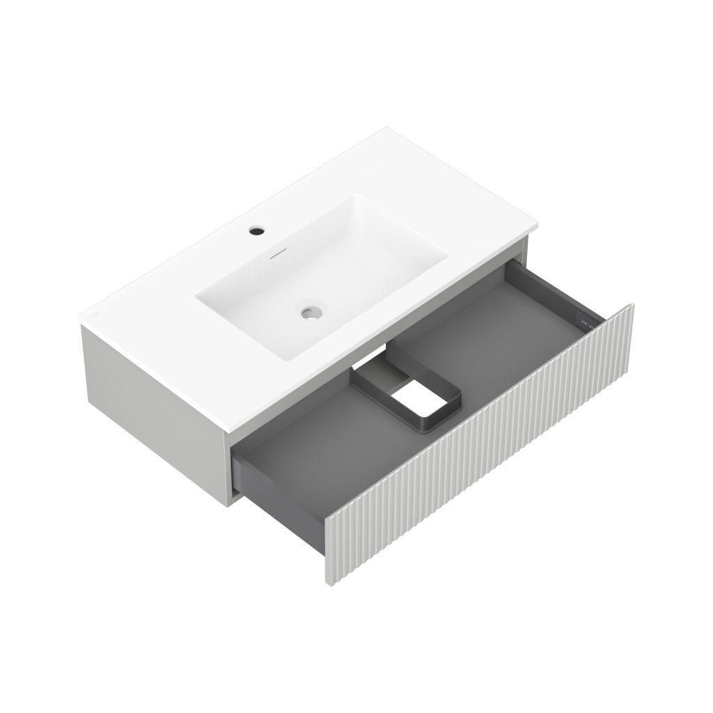 Mexen Rivel, mobilier de baie 90 cm cu lavoar Otis, 1 sertar, canelat, gri mat/alb, 91A20-09023-1-BF62-W18M01