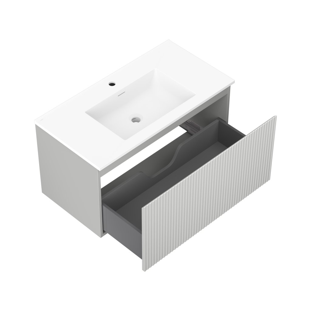 Mexen Rivel, mobilier de baie 90 cm cu lavoar Otis, 1 sertar, canelat, gri mat/alb, 91A20-09047-1-BF62-W18M01