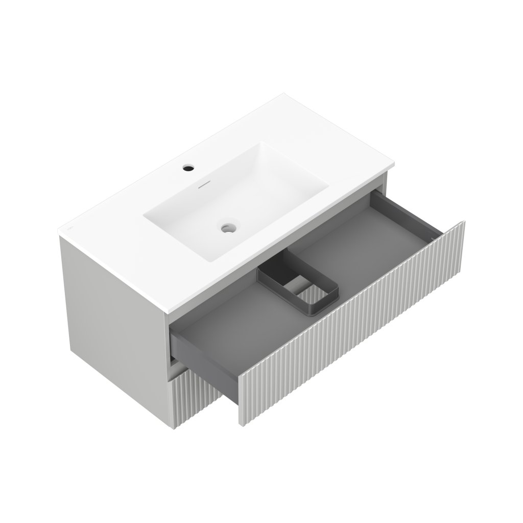 Mexen Rivel, mobilier de baie 90 cm cu lavoar Otis, 2 sertare, canelat, gri mat/alb, 91A20-09047-2-BFF62-W18M01