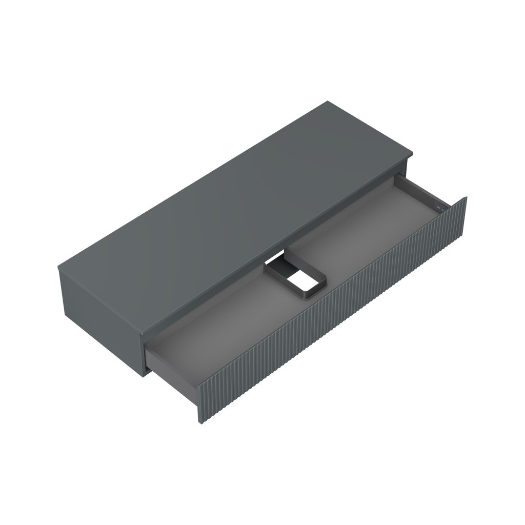 Mexen Rivel, mobilier de baie sub lavoar 140 cm cu blat, 1 sertar, canelat, grafit mat - 91A20-14023-1-BFC66