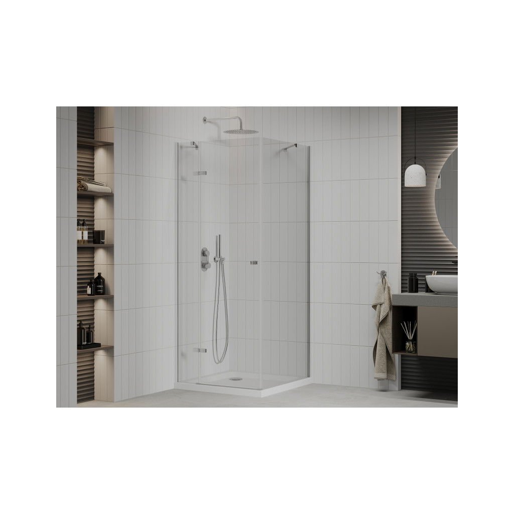 Mexen Roma, cabină de duș 100 (uşă) x 100 (perete) cm, sticlă transparentă 6mm, profil crom + cadă de duș subțire 5cm, 854-100-100-01-00-4010