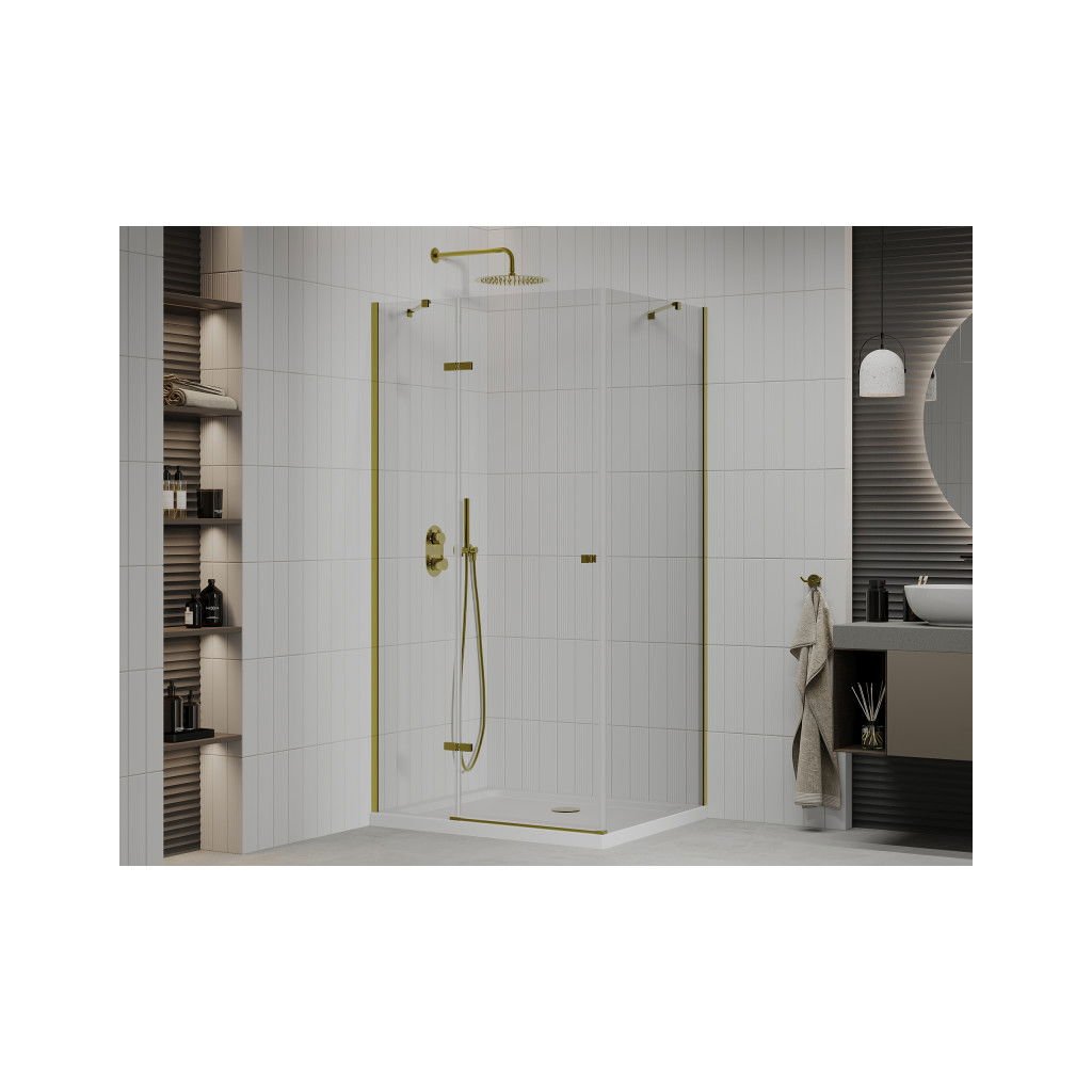 Mexen Roma, cabina de dus 100 (usa) x 80 (perete) cm, sticla transparenta 6mm, profil auriu + cadita de dus subtire 5cm, 854-100-080-50-00-4010