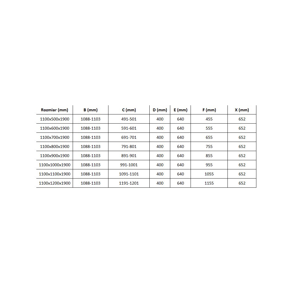 - Piesa - perete fix (C min-max): dimensiuni din tabelul de mai jos