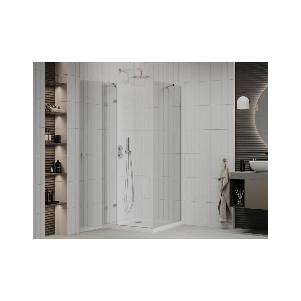 Mexen Roma, cabină de duș 80 (uşă) x 80 (perete) cm, sticlă transparentă 6mm, profil crom + cadă de duș subțire 5cm, 854-080-080-01-00-4010