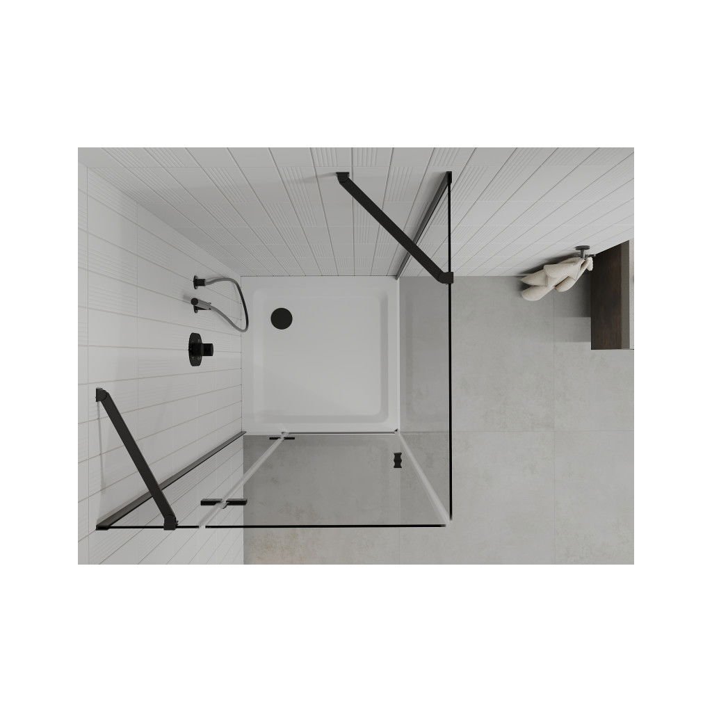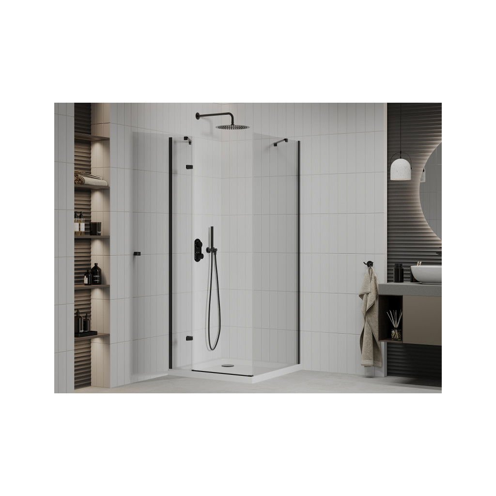 Mexen Roma, cabina de dus cu usa 1 canat 100 (usa) x 100 (perete) cm, sticla transparenta 6mm, profil negru, cadita de dus subtire 5cm alba cu sifon negru, 854-100-100-70-00-4010B