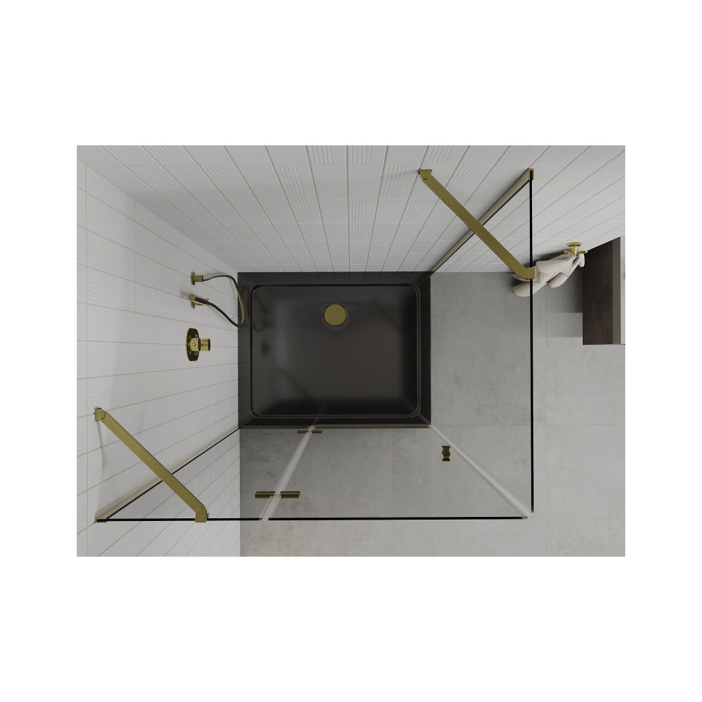 Mexen Roma, cabina de dus cu usa 1 canat 100 (usa) x 80 (perete) cm, sticla transparenta 6mm, profil auriu, cadita de dus subtire 5cm neagra, 854-100-080-50-00-4070G