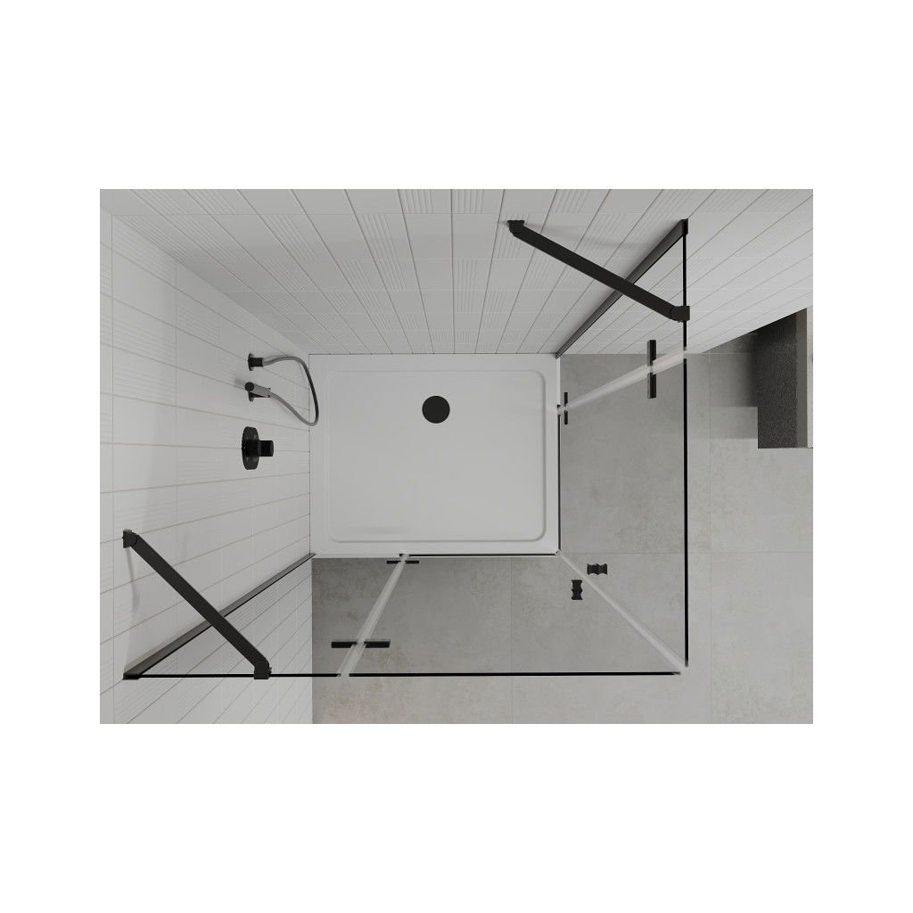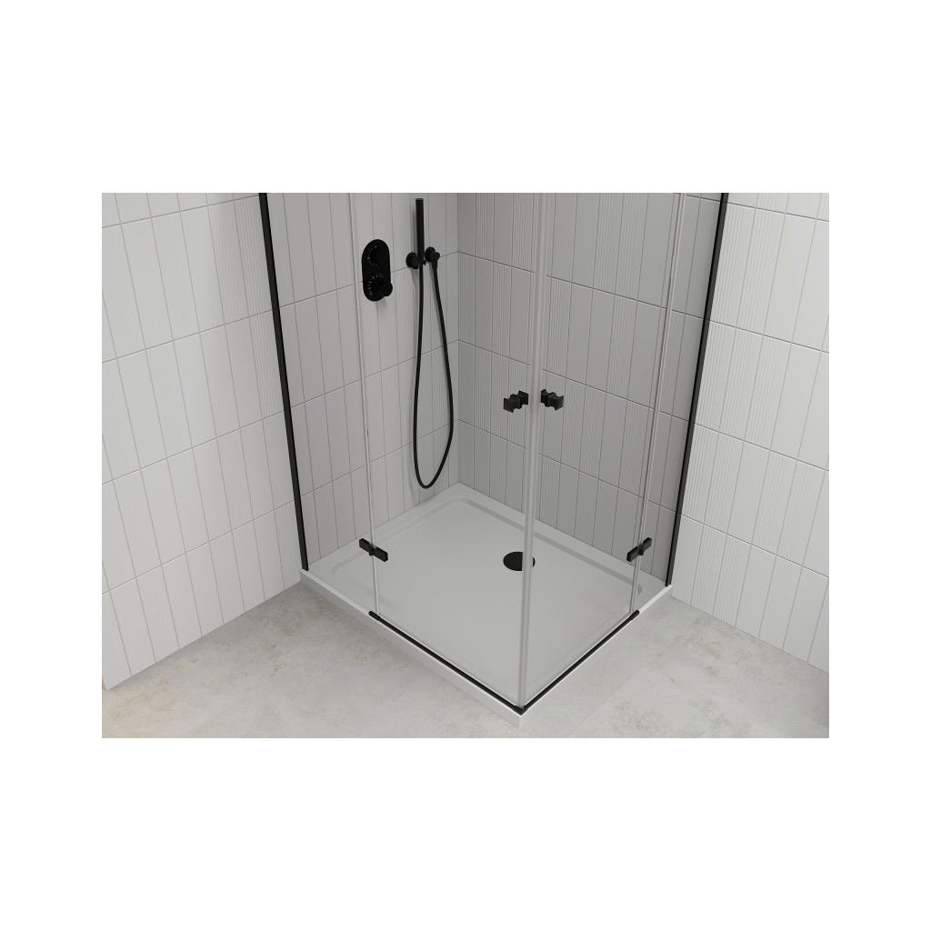 Mexen Roma Duo, cabină de duș 100 (uşă) x 90 (uşă) cm, sticlă transparentă 6 mm, profil negru + cadă de duș subțire albă 5 cm + sifon negru, 854-100-090-70-02-4010B