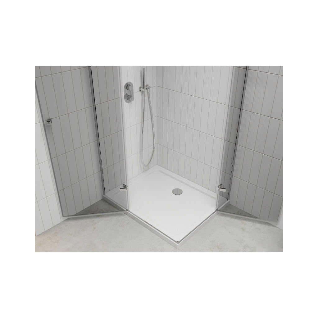 Mexen Roma Duo, cabină de duș 100 (uşă) x 90 (uşă) cm, sticlă transparentă 6mm, profil crom + cadă de duș subțire 5cm alb, 854-100-090-01-02-4010